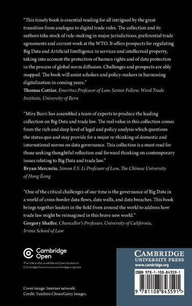 Big data and global trade law: An introduction Mira Burri; Part I. Global Trade Law and Policy in the Age of Big Data: 1. Data flows and global trade law Mira Burri; 2. Data flow-related provisions in preferential trade agreements: trends and patterns of diffusion Manfred Elsig and Sebastian Klotz; 3. The costs of data protectionism Martina F. Ferracane; 4. WTO law and cross-border data flows: an unfinished agenda Andrew D. Mitchell and Neha Mishra; Part II. From E-commerce to Big Data and AI: Emerging Issues in Global Trade Law: 5. Artificial intelligence and trade Anupam Chander; 6. Blockchain's practical and legal implications for global trade and global trade law Emmanuelle Ganne; 7. TRIPS meets big data Daniel J. Gervais; 8. Big data, AI and border enforcement of intellectual property rights: impact on trade flows Xavier Seuba; Part IV. Safeguarding Privacy and Other Users' Rights in the Age of Big Data: 9. Futuring digital privacy: reimaging the law/tech interplay Urs Gasser; 10. The algorithmic learning deficit: artificial intelligence, data protection, and trade Svetlana Yakovleva and Joris van Hoboken; 11. Panta Rhei: a European perspective on ensuring a high-level of protection of human rights in a world in which everything flows Kristina Irion; Part IV. Global Perspectives on Digital Trade Governance: 12. Data regulation with Chinese characteristics Henry S. Gao; 13. Regulatory convergence of data rules in Latin America Rodrigo Polanco Lazo; 14. Uploading CPTPP and USMCA provisions to the WTO's digital trade negotiations poses challenges for national data regulation: example from Canada Patrick Leblond; 15. Data ownership and data access rights: meaningful tools for promoting the EU digital single market? Florent Thouvenin and Aurelia Tamò-Larrieux; 16. Data is different, so policymakers should pay close attention to its governance Susan A. Aaronson.