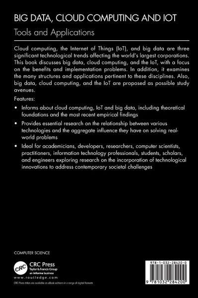 This book discusses Big Data, Cloud Computing, and IoT, with a focus on the benefits and implementation problems. In addition, it examines the many structures and applications pertinent to these disciplines. Also, Big Data, Cloud Computing, and IoT are proposed as possible study avenues.