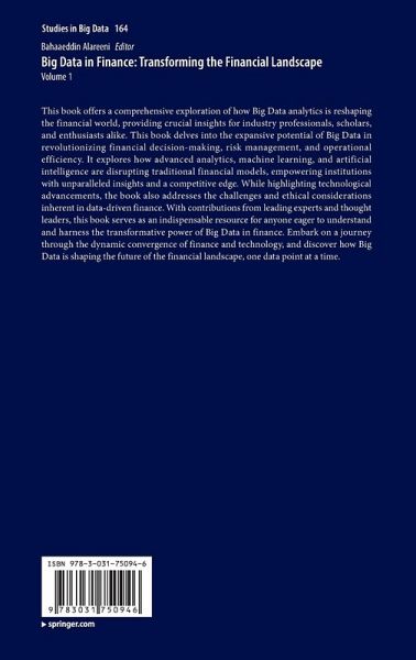 This book offers a comprehensive exploration of how Big Data analytics is reshaping the financial world, providing crucial insights for industry professionals, scholars, and enthusiasts alike. This book delves into the expansive potential of Big Data in revolutionizing financial decision-making, risk management, and operational efficiency. It explores how advanced analytics, machine learning, and artificial intelligence are disrupting traditional financial models, empowering institutions with unparalleled insights and a competitive edge. While highlighting technological advancements, the book also addresses the challenges and ethical considerations inherent in data-driven finance. With contributions from leading experts and thought leaders, this book serves as an indispensable resource for anyone eager to understand and harness the transformative power of Big Data in finance. Embark on a journey through the dynamic convergence of finance and technology, and discover how Big Data is shaping the future of the financial landscape, one data point at a time.