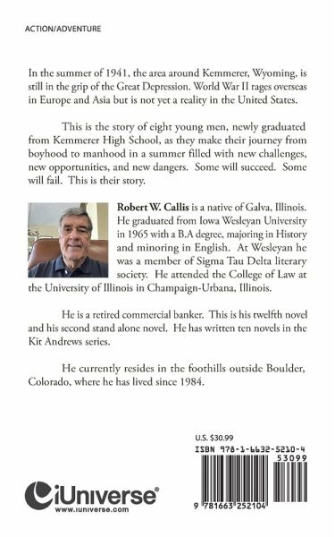 In the summer of 1941, the area around Kemmerer, Wyoming, is still in the grip of the Great Depression. World War II rages overseas in Europe and Asia but is not yet a reality in the United States. This is the story of eight young men, newly graduated from Kemmerer High School, as they make their journey from boyhood to manhood in a summer filled with new challenges, new opportunities, and new dangers. Some will succeed. Some will fail. This is their story.