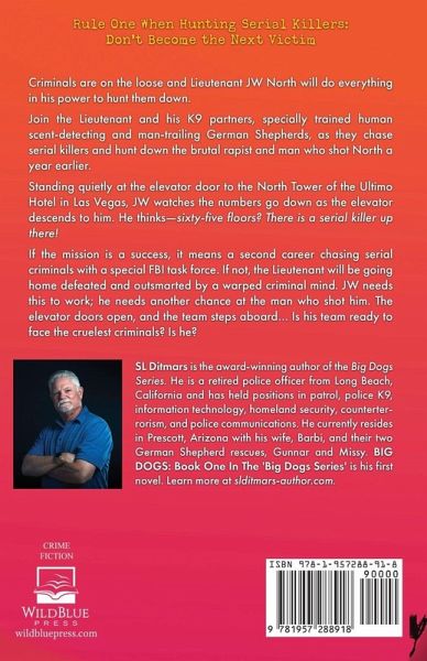 Criminals are on the loose and Lieutenant JW North will do everything in his power to hunt them down. Join the Lieutenant and his K9 partners, specially trained human scent-detecting and man-trailing German Shepherds, as they chase serial killers and hunt down the brutal rapist and man who shot North a year earlier. Standing quietly at the elevator door to the North Tower of the Ultimo Hotel in Las Vegas, JW watches the numbers go down as the elevator descends to him. He thinks-sixty-five floors? There is a serial killer up there! If the mission is a success, it means a second career chasing serial criminals with a special FBI task force. If not, the Lieutenant will be going home defeated and outsmarted by a warped criminal mind. JW needs this to work; he needs another chance at the man who shot him. The elevator doors open, and the team steps aboard... Is his team ready to face the cruelest criminals? Is he?