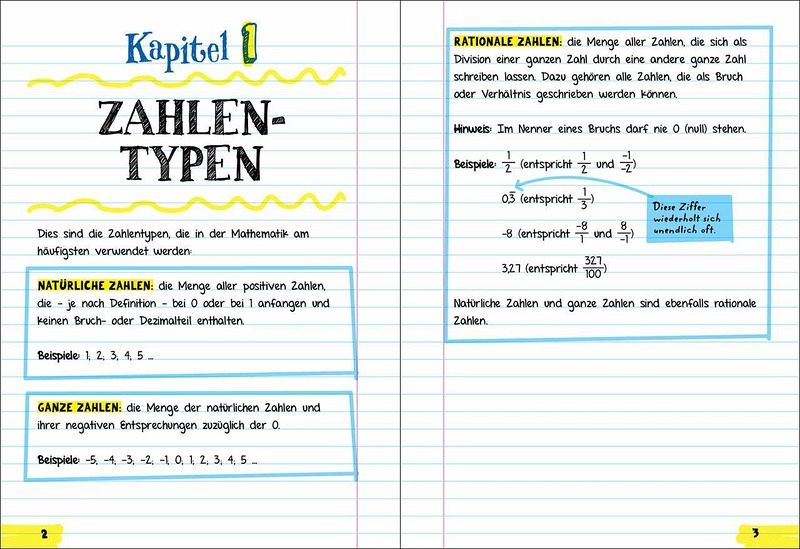 Definitionen, Tipps und Tricks werden in diesem umfassenden Nachschlagewerk und Übungsbuch ergänzt durch abwechslungsreiche Übungen aus dem Fachbereich Algebra. Zwischen modernen Scribbles, Cartoons und witzigen Kommentaren findet sich alles Wichtige zur Auffrischung, Vertiefung und Festigung des Lernstoffs von der 5. bis zur 9. Klasse, der durch kurze Tests am Ende jeder Lektion wiederholt und eingeprägt werden kann.