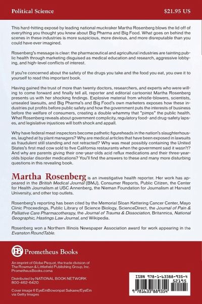 This hard-hitting exposé by leading national muckraker Martha Rosenberg blows the lid off of everything you thought you knew about Big Pharma and Big Food. What goes on behind the scenes in these industries is more suspicious, more devious, more disreputable than you could have ever imagined. Rosenberg’s message is clear: the pharmaceutical and agricultural industries are tainting public health through marketing disguised as medical education and research, aggressive lobbying, and high-level conflicts of interest. If you’re concerned about the safety of the drugs you take and the food you eat, you owe it to yourself to read this important book. Having gained the trust of more than twenty doctors, researchers, and experts who were willing to come forward and finally tell all, reporter and editorial cartoonist Martha Rosenberg presents us with her shocking findings. Explosive material from whistle-blowers, scientists, unsealed lawsuits, and Big Pharma’s and Big Food’s own marketers exposes how these industries put profits before public safety and how the government puts the interests of business before the welfare of consumers, creating a double whammy that "pimps" the public health. What Rosenberg reveals about government complicity, regulatory food- and drug-safety lapses, and legislative injustices will both shock and appall. Why have federal meat inspectors become pathetic figureheads in the nation’s slaughterhouses, laughed at by plant managers? Why are medical articles that have been exposed in lawsuits as fraudulent still standing and not retracted? Why was meat possibly containing the United States’ first mad cow sold to five California restaurants when the government said it wasn’t? And why are parents giving their one-year-olds acid reflux medications and their three-year-olds bipolar disorder medications? You’ll find the answers to these and many more disturbing questions in this revealing book.