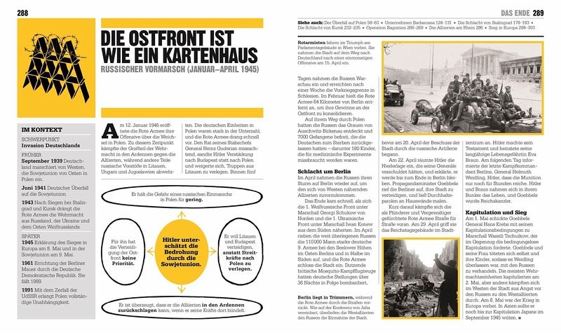 Von den 1930er-Jahren bis zum Staat Israel: Das Buch fasst die wichtigsten Ereignisse und Wendepunkte des Zweiten Weltkrieges zusammen und erklärt Abläufe von Schlachten sowie Taktiken und Technologien. Dabei werden alle beteiligten Nationen berücksichtigt. Biografie-Kästen liefern Informationen zu den bedeutendsten Persönlichkeiten.
