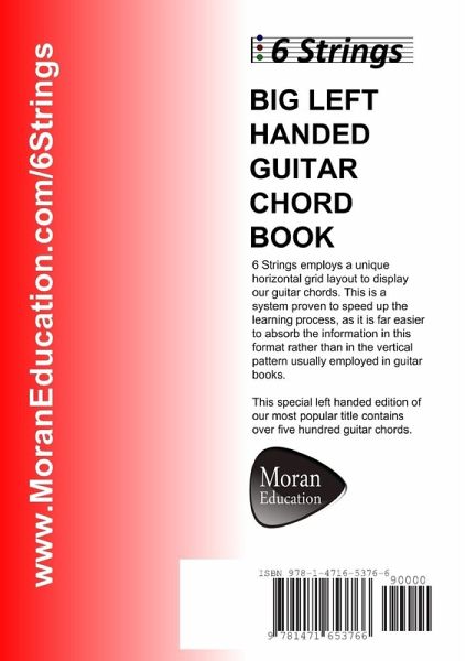 6 Strings is the unique new system of chord diagrams from Moran Education. All chords are displayed in a horizontal grid, rather than the vertical one employed in most guitar books. This system is proven to optimize your learning, allowing chord patterns to be learnt and digested much faster. This special edition of our most popular title caters for those who play left-handed guitars. With over 500 chords, in a pocket-sized A5 format, this book is small enough to be carried in your guitar case, yet big enough to be the only guitar chord book you'll ever need.