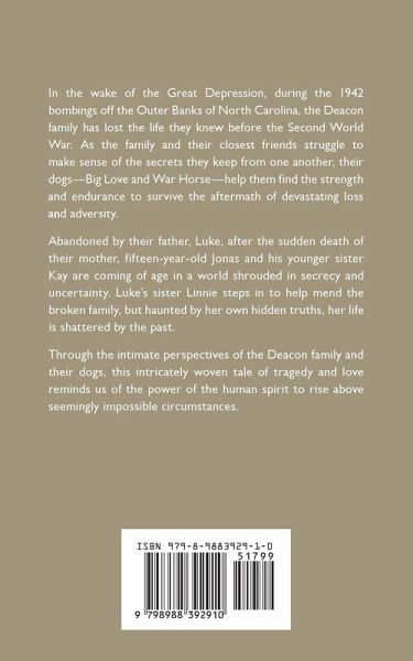In the wake of the Great Depression, during the 1942 bombings off the Outer Banks of North Carolina, the Deacon family has lost the life they knew before the Second World War. As the family and their closest friends struggle to make sense of the secrets they keep from one another, their dogs-Big Love and War Horse-help them find the strength and endurance to survive the aftermath of devastating loss and adversity. Abandoned by their father, Luke, after the sudden death of their mother, fifteen-year-old Jonas and his younger sister Kay are coming of age in a world shrouded in secrecy and uncertainty. Luke's sister Linnie steps in to help mend the broken family, but haunted by her own hidden truths, her life is shattered by the past. Through the intimate perspectives of the Deacon family and their dogs, this intricately woven tale of tragedy and love reminds us of the power of the human spirit to rise above seemingly impossible circumstances.