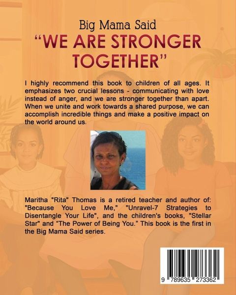 Big Mama Said is the first in a series of children's books dedicated to all grandmothers who nurture, discipline, inspire, advise, and love their children and others. So many people have succeeded because of the tireless efforts of amazing grandmothers. I highly recommend this book to children of all ages. It emphasizes two crucial lessons - communicating with love instead of anger, and we are stronger together than apart. When we unite and work towards a shared purpose, we can accomplish incredible things and make a positive impact on the world around us.
