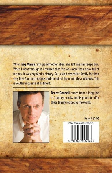 This book is so much more than a collection of recipes. It's a collection of memories, the snapshot of a lifestyle and the history of an entire family portrayed through the love and enjoyment of "down-home" Southern cooking. Brent was born and raised in the Deep South--Mobile, Alabama to be exact. Understanding the culture of this Southern community is key to appreciating the pages and pages of recipes that follow. In Brent's words, "Mobile is a place where people have names like Bubba, Shirley Boy, Booger Red, Cotton, Snort, Bubby and Aunt Vila (pronounced Aint Vila). People live in shotgun houses and "set" on front porches."
