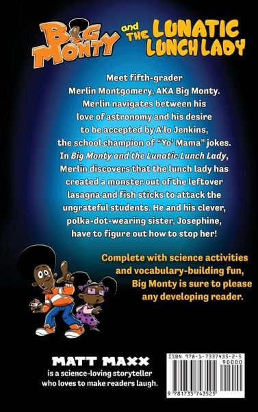 Meet fifth-grader Merlin Montgomery, AKA Big Monty. Merlin navigates between his love of astronomy and his desire to be accepted by A’lo Jenkins, the school champion of yo’ mama jokes. In Big Monty and the Lunatic Lunch Lady, Merlin discovers that Mrs. Findlehorner has created a monster out of the leftover lasagna and fish sticks to attack the ungrateful students. He and his clever, polka-dot-wearing sister, Josephine, have to figure out how to stop her! Complete with science activities and vocabulary building fun, Big Monty is sure to please any developing reader.