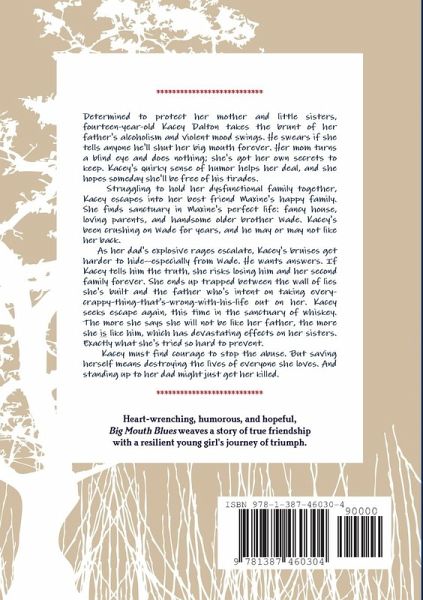 A blabbermouth who no one suspects is keeping a colossal secret.... Realistic fiction that's gripping from start to finish! Will she, won't she be sucked in to the cycle of alcoholism? Teens and adults will enjoy this powerful, compelling debut novel that creates strong emotions and makes readers think beyond the surface evidence. A refreshing take on romance in YA, and a light, humorous touch sprinkled throughout the grim subject of domestic violence will ensure that readers keep turning the pages until the uplifting conclusion. Fourteen-year-old Kacey Dalton struggles to keep from revealing her father's violent temper, but her bruises from his escalating abuse threaten to unravel the secrets that hold her life together.