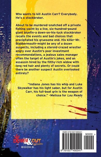 Who wants to kill Austin Carr? Everybody. He's a stockbroker. About to be ingeniously murdered -- snatched off a private fishing yacht by a live, six-hundred-pound giant bluefin -- a down-on-his-luck stockbroker recalls the events and bad choices that precipitated his gruesome end. His killer - Mr. Blabbermouth -- might be any of a dozen suspects, including a steroid-crazed wrestler angry over Austin's poor investment recommendations, a jealous sales manager often the target of Austin's jokes, and a widow with long red hair, sexy curves, and plenty of secrets. Or could there be another suspect Austin overlooked entirely until he stepped on board that yacht? This is the first book of the Austin Carr mystery series penned by Jack Getze. "Darkly comic, with an engaging protagonist." -- T.J. MacGregor, Edgar Winner, Author of The Tango Key Mysteries "Big Numbers is a gritty, sexy, violent, and funny book." -- Liz Clifford at Reviewed by Liz "Wonderful characters...well-written, entertaining...a good read." --Connie Anderson for Armchair Interviews "Indiana Jones has his whip and Luke Skywalker has his light saber, but for Austin Carr, his full-boat grin is the weapon of choice." --Melissa for Lou Reads "Jack Getze started his career as a newspaper reporter. As a result, BIG NUMBERS is lean and mean, with not a word wasted. A truly fun, genuinely funny read." --Lisa Guidarini for Bluestalking Reader