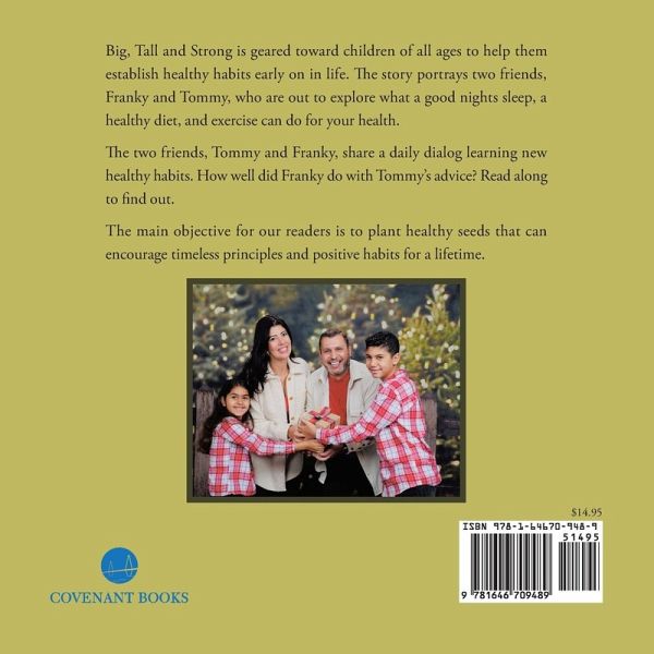 Big, Tall, and Strong is geared towards children of all ages to help them establish healthy habits early in life. The story portrays two friends, Franky and Tommy, who are out to explore what a good nights sleep, a healthy diet, and exercise can do for health. The two friends, Tommy and Franky, share a daily dialog learning new healthy habits. How well did Franky do with Tommy's advice? Read along to find out. The main objective for our readers is to plant healthy seeds that can encourage timeless principles and positive habits for a lifetime.