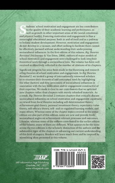 In this collection a group of internationally-renowned scholars re-examine their theoretical and conceptual work by highlighting the "what" (factors) and "how" (processes) of sociocultural influences in association with the key motivation and/or engagement construct(s) of their expertise.