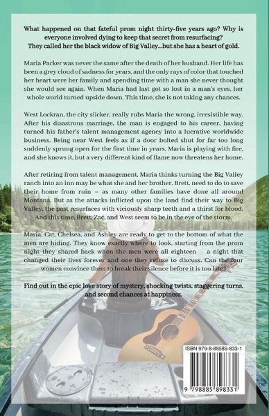 What happened on that fateful prom night thirty-five years ago? Why is everyone involved dying to keep that secret from resurfacing?They called her the black widow of Big Valley...but she has a heart of gold. Maria Parker was never the same after the death of her husband. Her life has been a grey cloud of sadness for years, and the only rays of color that touched her heart were her family and spending time with a man she never thought she would see again. When Maria had last got so lost in a man's eyes, her whole world turned upside down. This time, she is not taking any chances. West Lockran, the city slicker, really rubs Maria the wrong, irresistible way. After his disastrous marriage, the man is engaged to his career, having turned his father's talent management agency into a lucrative worldwide business. Being near West feels as if a door bolted shut for far too long suddenly sprung open for the first time in years. Maria is playing with fire, and she knows it, but a very different kind of flame now threatens her home. After retiring from talent management, Maria thinks turning the Big Valley ranch into an inn may be what she and her brother, Brett, need to do to save their home from ruin - as many other families have done all around Montana. But as the attacks inflicted upon the land find their way to Big Valley, the past resurfaces with viciously sharp teeth and a thirst for blood. And this time, Brett, Zac, and West seem to be in the eye of the storm. Maria, Cat, Chelsea, and Ashley are ready to get to the bottom of what the men are hiding. They know exactly where to look, starting from the prom night they shared back when the men were all eighteen - a night that changed their lives forever and one they refuse to discuss. Can the four women convince them to break their silence before it is too late?Find out in the epic love story of mystery, shocking twists, staggering turns, and second chances at happiness. The Montana Country Inn Romance series is perfect for lovers of exciting and inspirational sagas about family feuds, secrets, second chance romance, western adventure, strong heroines, lifelong friendships...and those times that make life all the richer. Next in the Series, Book 4, Double A Ranch.