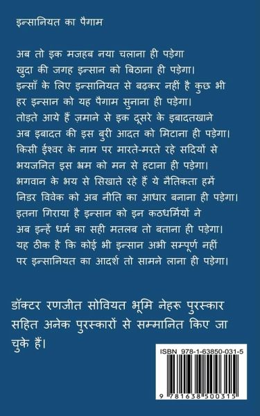 Doctor Ranjeet is a Humanist poet. His poems are based on humanity, ethics & compassion. This is the collection of poem written between 2002 & 2020. In these poems, poet expressed his worry of deteriorating condition of India. He want a society free of communal hatred, caste based discrimination. His ideal is unity of whole humanity, where all are equal by birth.