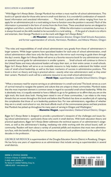 Bigger Isn't Always Better is designed to provide a practitioner's viewpoint of the challenges and issues lacing school administrators - particularly those who work in small districts. Based upon a combination of education theory and practical applications, the book contains many real life exampleswith tips for landing a job as administrator and then making a positive and successful first impression through a deliberate entry plan. Bigger Isn't Always Better addresses both the technical aspects of an administrator's assignment, as well as the administrator's leading, mediating role while working with the school board, with school staff, or the school's community. Readers will learn about a variety of potential pitfalls and situations that most new administrators face, with the benefit of learning how to over come and avoid such problems based on the author's four decades in the profession.