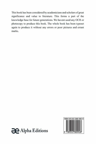 This book has been considered by academicians and scholars of great significance and value to literature. This forms a part of the knowledge base for future generations. We have represented this book in the same form as it was first published. Hence any marks seen are left intentionally to preserve its true nature.