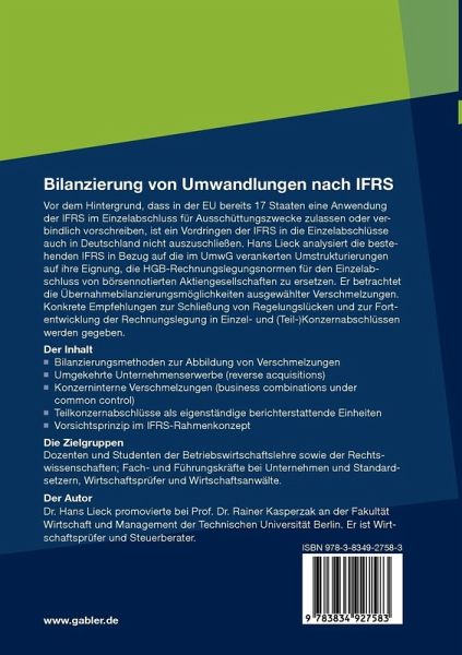 Vor dem Hintergrund, dass in der EU bereits 17 Staaten eine Anwendung der IFRS im Einzelabschluss für Ausschüttungszwecke zulassen oder verbindlich vorschreiben, ist ein Vordringen der IFRS in die Einzelabschlüsse auch in Deutschland nicht auszuschließen. Hans Lieck analysiert die bestehenden IFRS in Bezug auf die im UmwG verankerten Umstrukturierungen auf ihre Eignung, die HGB-Rechnungslegungsnormen für den Einzelabschluss von börsennotierten Aktiengesellschaften zu ersetzen. Er betrachtet die Übernahmebilanzierungsmöglichkeiten ausgewählter Verschmelzungen. Konkrete Empfehlungen zur Schließung von Regelungslücken und zur Fortentwicklung der Rechnungslegung in Einzel- und (Teil-)Konzernabschlüssen werden gegeben.