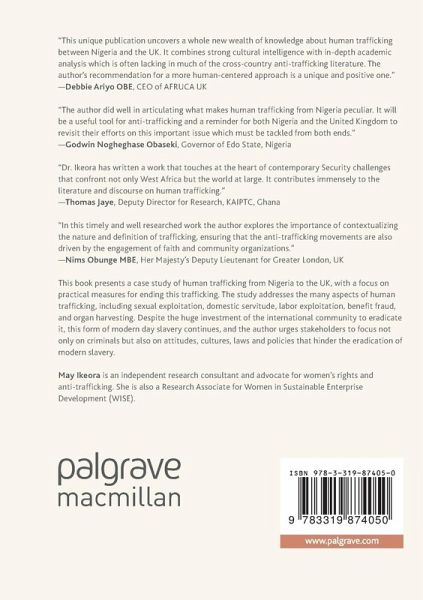 This book presents a case study of human trafficking from Nigeria to the UK, with a focus on practical measures for ending this trafficking. The study addresses the many aspects of human trafficking, including sexual exploitation, domestic servitude, labor exploitation, benefit fraud, and organ harvesting. Despite the huge investment of the international community to eradicate it, this form of modern day slavery continues, and the author urges stakeholders to focus not only on criminals but also on attitudes, cultures, laws and policies that hinder the eradication of modern slavery.