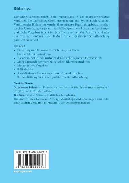 Der Methodenband führt leicht verständlich in das bildrekonstruktive Verfahren der Morphologischen Hermeneutik ein. Systematisch wird das Verfahren der Bildanalyse von der theoretischen Begründung bis zur methodischen Umsetzung vorgestellt. An Fallbeispielen wird dann das forschungspraktische Vorgehen Schritt für Schritt veranschaulicht. Abschließend wird das Erkenntnispotenzial von Bildern für die qualitative Sozialforschung pointiert diskutiert.