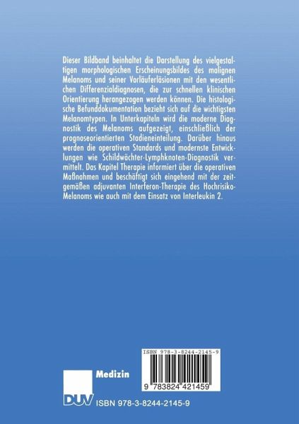Ein Bildband mit der Darstellung des vielgestaltigen morphologischen Erscheinungsbildes des malignen Melanoms und seiner Vorläuferläsionen mit den wesentlichen Differenzialdiagnosen und ausführlichen Therapiehinweisen.