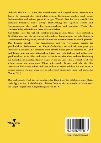 Das vorliegende Werk ist ein wundervoller Band über die Erlebnisse einer Reise nach Ägypten im 19. Jahrhundert. Dieses Buch ist ein unveränderter Nachdruck der längst vergriffenen Originalausgabe von 1878.