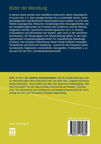 als Visualisierungsmuster für Prozesse des Scheiterns und der Reifung eingesetzt werden. Spezifische Gestaltungsweisen von z.B. Kostüm, Schauplätzen und Blickweisen der Kamera, aber auch in der narrativen Konstruktion, der Wissensgabe und Zeitdarstellung zählen zu den typologisierbaren Visualisierungselementen für charakterliche Wandlungsprozesse.