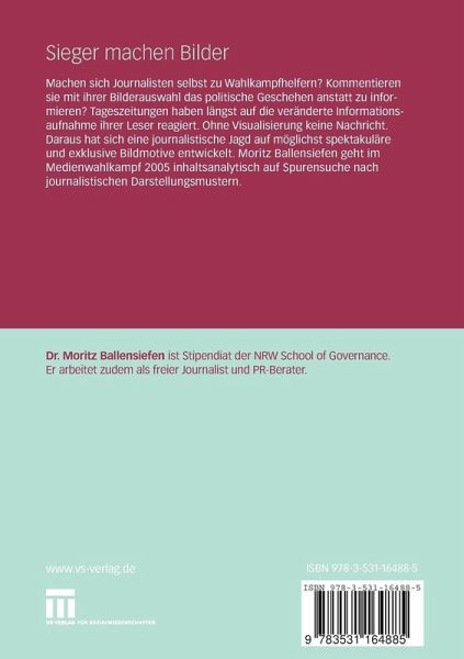 Machen sich Journalisten selbst zu Wahlkampfhelfern? Kommentieren Sie mit ihrer Bilderauswahl das politische Geschehen anstatt zu informieren? Tageszeitungen haben längst auf die veränderte Informationsaufnahme ihrer Leser reagiert. Ohne Visualisierung keine Nachricht. Daraus hat sich eine journalistische Jagd auf möglichst spektakuläre und exklusive Bildmotive entwickelt. Moritz Ballensiefen geht im Medienwahlkampf 2005 inhaltsanalytisch auf Spurensuche nach journalistischen Darstellungsmustern.