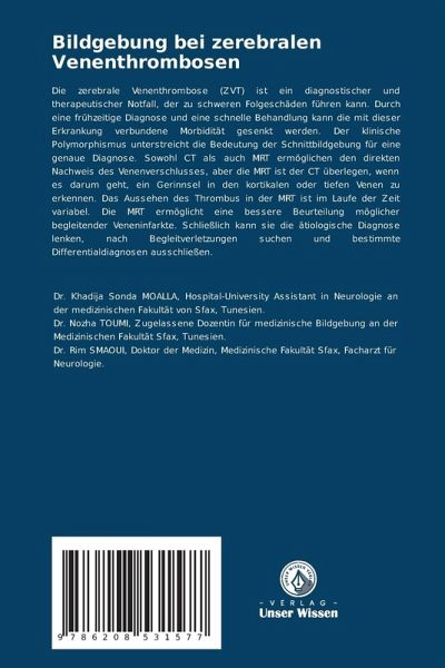 Die zerebrale Venenthrombose (ZVT) ist ein diagnostischer und therapeutischer Notfall, der zu schweren Folgeschäden führen kann. Durch eine frühzeitige Diagnose und eine schnelle Behandlung kann die mit dieser Erkrankung verbundene Morbidität gesenkt werden. Der klinische Polymorphismus unterstreicht die Bedeutung der Schnittbildgebung für eine genaue Diagnose. Sowohl CT als auch MRT ermöglichen den direkten Nachweis des Venenverschlusses, aber die MRT ist der CT überlegen, wenn es darum geht, ein Gerinnsel in den kortikalen oder tiefen Venen zu erkennen. Das Aussehen des Thrombus in der MRT ist im Laufe der Zeit variabel. Die MRT ermöglicht eine bessere Beurteilung möglicher begleitender Veneninfarkte. Schließlich kann sie die ätiologische Diagnose lenken, nach Begleitverletzungen suchen und bestimmte Differentialdiagnosen ausschließen.