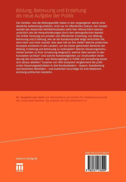 Susanne von Hehl analysiert vergleichend die politischen Steuerungsaktivitäten in drei Bundesländern - Bayern, Brandenburg und Nordrhein-Westfalen - und erarbeitet Vorschläge für eine Weiterentwicklung politischen Handelns.