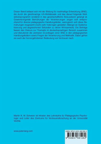 Dieser Band befasst sich mit der Bildung für nachhaltige Entwicklung (BNE), die durch die gleichnamige UN-Weltdekade und das darauf folgende Weltaktionsprogramm verstärkt in das gesellschaftliche Bewusstsein gelangt ist. Gewinnbringende Bemühungen der Verankerungen zeigen sich entsprechend für diverse pädagogische Handlungsfelder, wenngleich sich diese Bemühungen insgesamt (noch) sehr heterogen gestalten (Mangel an Systematisierung und abgesicherten Befunden zu deren Wirksamkeit). Die Beiträge fassen den Diskurs zur Thematik im deutschsprachigen Bereich zusammen und diskutieren die zentralen Grundlagen einer BNE in den pädagogischen Handlungsfeldern sowie Fragen der Verankerung und Methodik. Dabei gehen sie auch der hervorgehobenen Bedeutung von Vertrauen nach.
