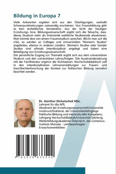 Viele Antworten ergeben sich aus den Überlegungen, weshalb Schwerpunktsetzungen notwendig erscheinen. Von Frauenbildung gibt es kein einheitliches Verständnis. Aus der Sicht der heutigen Erziehungs- bzw. Bildungswissenschaft ergibt sich die Tatsache, dass dieses Studium mehr als Dreiviertel weibliche Studierende absolvieren. Man könnte also von einem Frauenstudium sprechen. Blickt man auf die USA, so werden an Colleges und Universitäten "Women's Studies" angeboten, ebenso in anderen Ländern. Women's Studies oder Gender Studies sind oftmals interdisziplinär angelegt und haben eine Beteiligung von Erziehungswissenschaft.Der persönliche Zugang zur Thematik ergibt sich aus dem universitären Studium und den universitären Lehraufträgen. Die Auseinandersetzung mit der Fachliteratur ergänzt die Sichtweisen. Hochschuldidaktisch soll in den interdisziplinären Lehrveranstaltungen zur Frauen- und Geschlechterforschung der Kontext zur Politischen Bildung vermehrt beachtet werden.