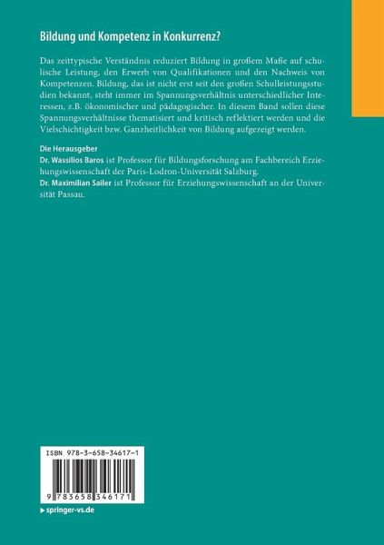 Dr. Wassilios Baros ist Professor für Bildungsforschung am Fachbereich Erziehungswissenschaft der Paris-Lodron-Universität Salzburg. Dr. Maximilian Sailer ist Professor für Erziehungswissenschaft an der Universität Passau.
