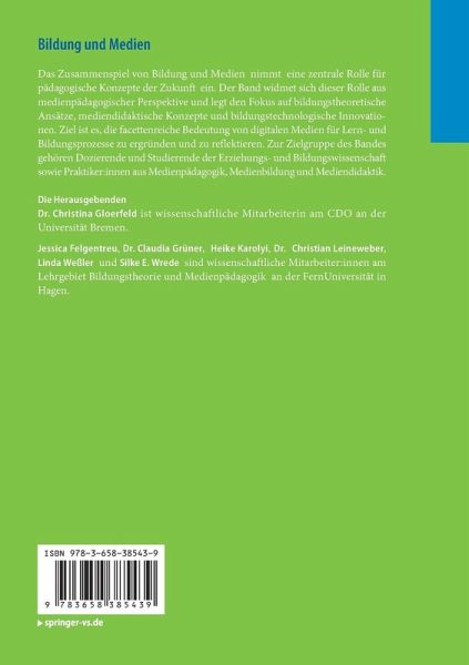 Das Zusammenspiel von Bildung und Medien nimmt eine zentrale Rolle für pädagogische Konzepte der Zukunft ein. Der Band widmet sich dieser Rolle aus medienpädagogischer Perspektive und legt den Fokus auf bildungstheoretische Ansätze, mediendidaktische Konzepte und bildungstechnologische Innovationen. Ziel ist es, die facettenreiche Bedeutung von digitalen Medien für Lern- und Bildungsprozesse zu ergründen und zu reflektieren. Zur Zielgruppe des Bandes gehören Dozierende und Studierende der Erziehungs- und Bildungswissenschaft sowie Praktiker:innen aus Medienpädagogik, Medienbildung und Mediendidaktik.