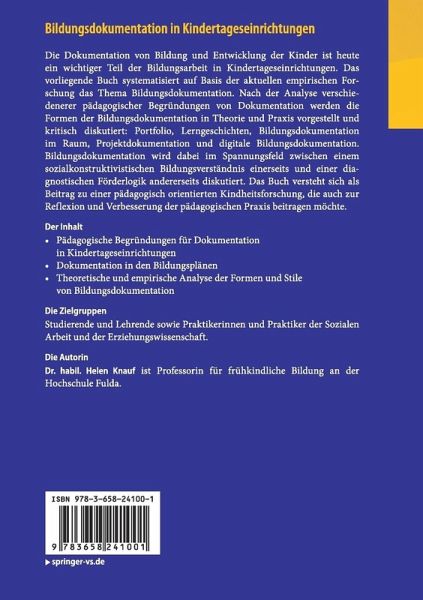 Die Dokumentation von Bildung und Entwicklung der Kinder ist heute ein wichtiger Teil der Bildungsarbeit in Kindertageseinrichtungen. Das vorliegende Buch systematisiert auf Basis der aktuellen empirischen Forschung das Thema Bildungsdokumentation. Nach der Analyse verschiedenerer pädagogischer Begründungen von Dokumentation werden die Formen der Bildungsdokumentation in Theorie und empirischer Praxis vorgestellt und kritisch diskutiert: Portfolio, Lerngeschichten, Bildungsdokumentation im Raum, Projektdokumentation und digitale Bildungsdokumentation. Bildungsdokumentation wird dabei im Spannungsfeld zwischen einem sozialkonstruktivistischen Bildungsverständnis einerseits und einer diagnostischen Förderlogik andererseits diskutiert. Das Buch versteht sich als Beitrag zu einer pädagogisch orientierten Kindheitsforschung, die auch zur Reflexion und Verbesserung der pädagogischen Praxis beitragen möchte.