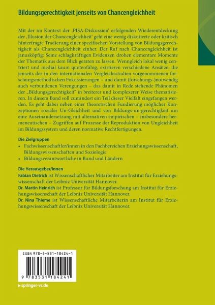 In diesem Band soll zumindest ein Teil dieser Vielfalt eingefangen werden. Es geht dabei neben einer theoretischen Fundierung möglicher Konzeptionen sozialer Un-Gleichheit und Bildungs-un-gerechtigkeit um eine Auseinandersetzung mit alternativen empirischen - insbesondere hermeneutischen - Zugriffen auf Prozesse der Reproduktion von Ungleichheit im Bildungssystem und deren normative Rechtfertigungen.