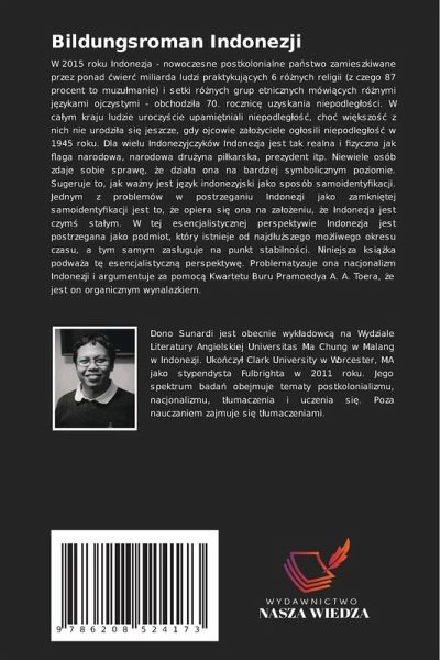 W 2015 roku Indonezja - nowoczesne postkolonialne pästwo zamieszkiwane przez ponad ¿wier¿ miliarda ludzi praktykuj¿cych 6 ró¿nych religii (z czego 87 procent to muzu¿manie) i setki ró¿nych grup etnicznych mówi¿cych ró¿nymi j¿zykami ojczystymi - obchodzi¿a 70. rocznic¿ uzyskania niepodleg¿o¿ci. W cäym kraju ludzie uroczy¿cie upami¿tniali niepodleg¿o¿¿, cho¿ wi¿kszo¿¿ z nich nie urodzi¿a si¿ jeszcze, gdy ojcowie zäo¿yciele og¿osili niepodleg¿o¿¿ w 1945 roku. Dla wielu Indonezyjczyków Indonezja jest tak realna i fizyczna jak flaga narodowa, narodowa dru¿yna pi¿karska, prezydent itp. Niewiele osób zdaje sobie spraw¿, ¿e dziäa ona na bardziej symbolicznym poziomie. Sugeruje to, jak wäny jest j¿zyk indonezyjski jako sposób samoidentyfikacji. Jednym z problemów w postrzeganiu Indonezji jako zamkni¿tej samoidentyfikacji jest to, ¿e opiera si¿ ona na zäo¿eniu, ¿e Indonezja jest czym¿ stäym. W tej esencjalistycznej perspektywie Indonezja jest postrzegana jako podmiot, który istnieje od najd¿u¿szego mo¿liwego okresu czasu, a tym samym zas¿uguje na punkt stabilno¿ci. Niniejsza ksi¿¿ka podwäa t¿ esencjalistyczn¿ perspektyw¿. Problematyzuje ona nacjonalizm Indonezji i argumentuje za pomoc¿ Kwartetu Buru Pramoedya A. A. Toera, ¿e jest on organicznym wynalazkiem.