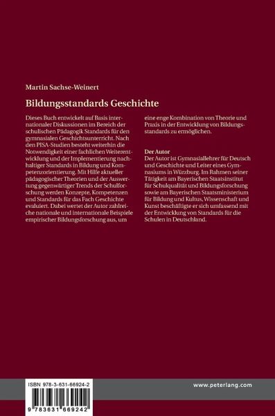 Dieses Buch entwickelt auf Basis internationaler Diskussionen im Bereich der schulischen Pädagogik Standards für den gymnasialen Geschichtsunterricht. Nach den PISA-Studien besteht weiterhin die Notwendigkeit einer fachlichen Weiterentwicklung und der Implementierung nachhaltiger Standards in Bildung und Kompetenzorientierung. Mit Hilfe aktueller pädagogischer Theorien und der Auswertung gegenwärtiger Trends der Schulforschung werden Konzepte, Kompetenzen und Standards für das Fach Geschichte evaluiert. Dabei wertet der Autor zahlreiche nationale und internationale Beispiele empirischer Bildungsforschung aus, um eine enge Kombination von Theorie und Praxis in der Entwicklung von Bildungsstandards zu ermöglichen.