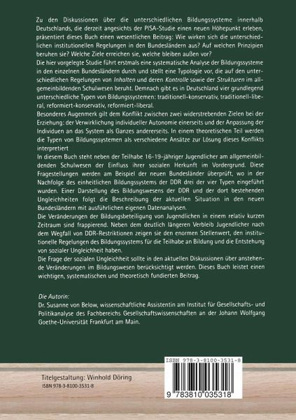 In diesem Buch steht neben der Teilhabe 16-19jähriger Jugendlicher am allgemeinbildenden Schulwesen der Einfluss ihrer sozialen Herkunft im Vordergrund. Diese Fragenstellungen werden am Beispiel der neuen Bundesländer überprüft, wo in der Nachfolge des einheitlichen Bildungssystems der DDR drei der vier Typen eingeführt wurden. Eine Darstellung des Bildungswesens der DDR und der dort bestehenden Ungleichheiten folgt die Beschreibung der aktuellen Situation in den neuen Bundesländern mit ausführlichen eigenen Datenanalysen. Die Veränderungen der Bildungsbeteiligung von Jugendlichen in einem relativ kurzen Zeitraum sind frappierend. Neben dem deutlich längeren Verbleib Jugendlicher nach dem Wegfall von DDR-Restriktionen zeigen sieden enormen Stellenwert, den