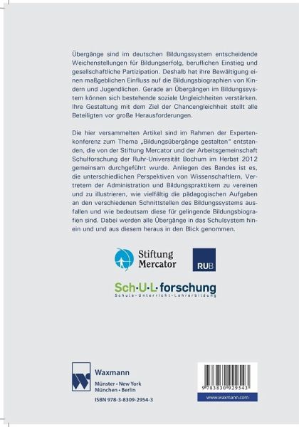 Die hier versammelten Artikel sind im Rahmen der Expertenkonferenz zum Thema "Bildungsübergänge gestalten" entstanden, die von der Stiftung Mercator und der AG Schulforschung der Ruhr-Universität Bochum im Herbst 2012 gemeinsam durchgeführt wurde. Anliegen des Bandes ist es, die unterschiedlichen Perspektiven von Wissenschaftlern, Akteuren und Entscheidungsträgern zu vereinen und zu illustrieren, wie vielfältig die pädagogischen Aufgaben an den verschiedenen Schnittstellen des Bildungssystems ausfallen und wie bedeutsam diese für gelingende Bildungsbiografien sind. Dabei werden alle Übergänge in das Schulsystem hinein und aus diesem heraus einer Besprechung unterzogen.