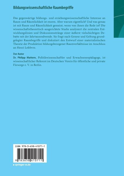 Die wissenschaftstheoretisch ausgerichtete Studie analysiert die zentralen Entwicklungslinien und Diskussionsstränge einer äußerst vielschichtigen Debatte seit der Jahrtausendwende. Sie fragt nach Genese und Geltung grundgelegter Raumbegriffe und diskutiert den Entwurf einer materialistischen Theorie der Produktion bildungsbezogener Raumverhältnisse im Anschluss an Henri Lefebvre.