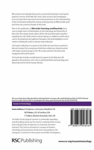 This book is the first book to comprehensively cover the important properties of bile acids and bile acid toxicology. Bile acids are increasingly being seen as important carcinogenic agents in cancers and there is wide recognition of their role in obesity linked diseases. Topics covered in this book include: synthesis and chemistry, regulation and biotransformation in vivo; Bile acid induced cell death; Genotoxicity; Bile acid induced gene expression and cell signalling abnormalities and liver disease; colorectal cancer, oesophageal cancer and obesity. This book will appeal to all researchers and students who wish to understand the basic toxicology and bioactivity of Bile acids.