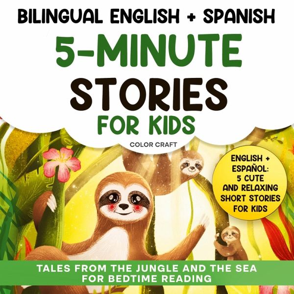 Bilingual Five-Minute Bedtime Stories for Little Adventurers - English and Spanish // En ingles y español Cuentos cortos y relajantes para niños de 2 a 8 Años, con ballenas, tigres, lémures, perezosos y mucho más. Get cozy with five heartwarming tales designed to relax and entertain kids-perfect for a five-minute story before bed. Each story introduces little readers to a loveable animal friend, bringing gentle adventures that make bedtime both fun and calming. All stories are in both English and Spanish - kids love learning through stories! 5-Minute Stories For Kids: Tales From The Jungle And The Sea is a collection of five tall tales filled with charm, color, and just the right touch of magic. Each story is filled with hand-drawn, heartwarming illustrations, and is told in both English and Spanish, one alternating paragraph per language, making it easy to follow. Inside, kids will meet:The Whale Who Talks - La ballena que habla - Wally, the curious whale who discovers he can talk with humans using his own whale sounds... and finds wonder in the world above the waves. The Little Tiger's Mighty Roar - El tigre que perdió su rugido - Timmy the tiger's a little glum because he can't roar as loud as the others... yet. How will he find his roar and become the mightiest in the jungle? The Lemur Who Climbs Home - El lémur que vuelve a casa - Meet Lenny, the playful lemur who takes a happy, unplanned adventure... before bouncing back to his family using clues from the forest. The Speedy Sloth - El perezoso veloz - How does he fit in, even though he's different? Sammy is a quick-footed sloth who shows his friends that there's more than one way to be a sloth. The Butterfly Bee - La mariposa abeja - What to do, when you're stuck between two worlds? That's what Buzz, a butterfly, is pondering... while trying to fit in with his butterfly family as well as his bee friends. Why Families Love This Collection:Perfect five-minute tales for bedtime: Quick, cozy stories to wind down the day with smiles and wonder. Adorable, memorable characters: Loveable animal friends brought to life through colorful, hand-drawn illustrations. Stories that speak to young imaginations: Each adventure offers something special - encouraging curiosity, positivity, and joy... with a little extra warmth before sleep. Beautiful, hand-drawn illustrations: Each story is packed with unique, hand-drawn illustrations that make kids glow. Imagine your child speaking Spanish from the beginning of their life... with a love of foreign languages and curiosity about the world.. right from the start. This book could be the beginning of a lifelong adventure. Spanish is a useful and beautiful language, spoken by over 500 million people worldwide. Early exposure makes a big difference.