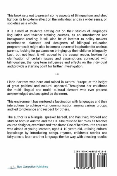 This book sets out to present some aspects of Bilingualism, and shed light on its long-term effect on the individual, and in a wider sense, on societies as a whole. It is aimed at students setting out on their studies of languages, linguistics and teacher training courses, as an introduction and background reading; it will also be of interest to policy makers, examination planners and designers of bilingual education programmes; it might also become a source of inspiration for anxious parents, looking for guidance on bringing up their children bilingually. Last, but not least it will appeal to the casual reader, looking for clarification of certain issues and assumptions connected with bilingualism, the long term influences and effects on the individual, and provide a starting point for further investigation.