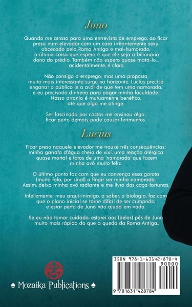 Juno Quando me atraso para uma entrevista de emprego, ao ficar presa num elevador com um cara irritantemente sexy, obcecado pela Roma Antiga e mal-humorado, a última coisa que espero é que ele seja o bilionário dono do prédio. Também não espero quase matá-lo... acidentalmente, é claro. Não consigo o emprego, mas uma proposta muito mais interessante surge no horizonte. Lucius precisa enganar o público (e a avó) de que tem uma namorada, e eu preciso do dinheiro para pagar minha faculdade. Nosso arranjo é mutuamente benéfico, até que algo me atinge. Ser fascinada por cactos me ensinou algo: ficar perto demais pode causar ferimentos. Lucius Ficar preso naquele elevador me trouxe três consequências: minha garrafa d'água cheia de xixi, uma reação alérgica quase mortal e fotos de uma 'namorada' que fazem minha avó muito feliz. O último ponto faz com que eu convença essa garota (muito fofa, por sinal) a fingir ser minha namorada. Assim, deixo minha avó radiante e me livro das caça-fortunas. Infelizmente, meu arqui-inimigo, a saber, a biologia, faz com que o plano inicial se torne difícil de ser cumprido, e estar perto de Juno não ajuda em nada. Se eu não tomar cuidado, estarei aos (belos) pés de Juno muito mais rápido do que a queda da Roma Antiga.