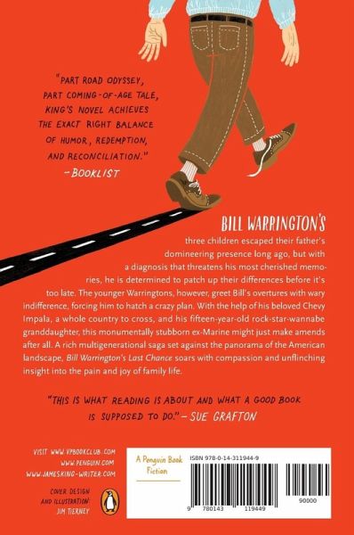 "Part road odyssey, part coming-of-age tale, King's novel achieves the exact right balance of humor, redemption, and reconciliation." -Booklist James King's acclaimed debut novel is a rich multigenerational saga that soars with compassion and insight into the pain and joy of family life. Confronted with a diagnosis that threatens his most cherished memories, Bill Warrington-a monumentally stubborn ex-Marine-hatches a daring scheme to grab the attention of his three grown children and patch up their differences. April, his fifteen-year-old granddaughter, wants nothing so much as to become a rock star on the West Coast, making her the perfect-and perfectly willing-abductee on a cross- country trip. With the panorama of America as its backdrop, their adventure becomes an unforgettable journey of discovery and atonement.