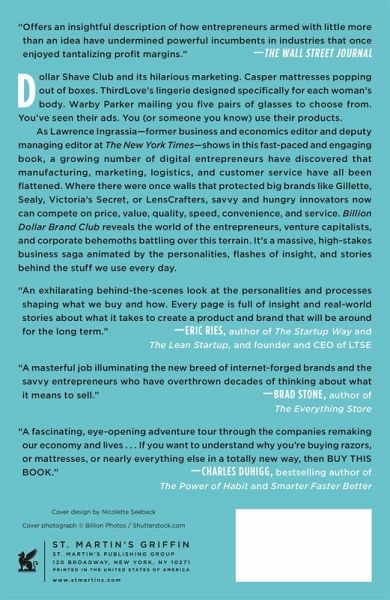 A leading business journalist takes us inside a business revolution: the upstart brands taking on the empires that long dominated the trillion-dollar consumer economy. Dollar Shave Club and its hilarious marketing. Casper mattresses popping out of a box. Third Love's lingerie designed specifically for each woman's body. Warby Parker mailing you five pairs of glasses to choose from. You've seen their ads. You (or someone you know) use their products. Each may appear, in isolation, as a rare David with the bravado to confront a Goliath, but taken together they represent a seismic shift in a business model that has lasted more than a century. As Lawrence Ingrassia--former business and economics editor and deputy managing editor at the New York Times--shows in this timely and eye-opening book, a growing number of digital entrepreneurs have found new and creative ways to crack the code on the bonanza of physical goods that move through our lives every day. They have discovered that manufacturing, marketing, logistics, and customer service have all been flattened-where there were once walls that protected big brands like Gillette, Sealy, Victoria's Secret, or Lenscrafters, savvy and hungry innovators now can compete on price, value, quality, speed, convenience, and service. Billion Dollar Brand Club reveals the world of the entrepreneurs, venture capitalists, and corporate behemoths battling over this terrain. And what fun it is. It's a massive, high-stakes business saga animated by the personalities, flashes of insight, and stories behind the stuff we use every day.