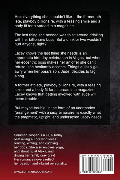 Enjoy this steamy contemporary story by USA Today Bestselling dark billionaire romance author Summer Cooper! He's everything she shouldn't like... the former athlete, playboy billionaire, with a teasing smile and a body fit for a spread in a magazine... The last thing she needed was to sit around drinking with her billionaire boss. But a drink or two wouldn't hurt anyone, right? Lacey knows the last thing she needs is an impromptu birthday celebration in Vegas, but when her eccentric boss makes her an offer she can't refuse, she hesitantly accepts. Things quickly go awry when her boss's son, Jude, decides to tag along. A former athlete, playboy billionaire, with a teasing smile and a body fit for a spread in a magazine, Lacey knows that getting involved with Jude will mean trouble. But maybe trouble, in the form of an unorthodox "arrangement" with a sexy billionaire, is exactly what the pragmatic, uptight, and undersexed Lacey needs. Unveil the seductive secrets of the affluent elite as love entwines with ambition, leaving you captivated from page one. Unleash your fantasies and experience the steamy allure of desire, success, and the untamed hearts of those entangled in this tantalizing tale. Dive into the pages now and immerse yourself in a world where love knows no bounds and passion blazes like wildfire. Get your heart racing today! If you enjoy sizzling adult romances with mated mates, enemies to lovers, fake marriage, unexpected twists, this book is a must-read. Perfect for fans of Kat T. Masen, Marni Mann, Raylin Marks, Whitney G. and Layla Hagen. This is the large print version, created specifically for low-sight readers. Enjoy!