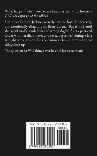 What happens when your secret fantasies about the hot new CEO are exposed at the office? Shy, quiet Pamsey Jackson secretly has the hots for her sexy, but emotionally distant, boss Brett Lorenz. But it isn't until she accidentally sends him the wrong digital file (a personal folder with her diary notes and revealing selfies) during a late at night work session that things heat up. The question is: Will things ever be cool between them?