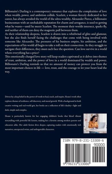Billionaire's Darling is a contemporary romance that explores the complexities of love when wealth, power, and ambition collide. Scarlett, a woman fiercely dedicated to her career, has always avoided the world of the ultra-wealthy. Alexander Pierce, a billionaire businessman with an unshakable reputation for charm and arrogance, is used to getting what he wants-until he meets Scarlett. The moment their worlds intersect, sparks fly, and neither of them can deny the magnetic pull between them. As their relationship deepens, Scarlett is drawn into a whirlwind of glitz and glamour, but she also finds herself facing the challenges that come with being involved with someone like Alexander. The pressures of his business empire, his ambition, and the expectations of his world all begin to take a toll on their connection. As they struggle to navigate their differences, they must each face the question: Can love survive in a world where everything has a price? This emotionally charged love story will keep readers captivated as it delves into themes of trust, ambition, and the power of love in a world dominated by wealth and power. Billionaire's Darling reminds us that no amount of money can protect you from the most important choices in life - love, trust, and the courage to let your heart lead the way.